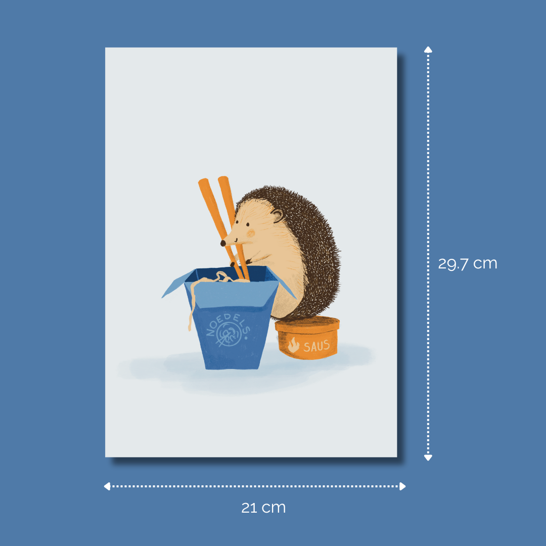 Krijgt deze vrolijke print een plekje in je keuken? Of misschien in een kinderkamer? Of gaat hij je een glimlach bezorgen bij de wasmachine? De poster is gedrukt op stevig papier en is sterk genoeg om neer te zetten zonder lijst, maar inlijsten en ophangen kan natuurlijk ook!